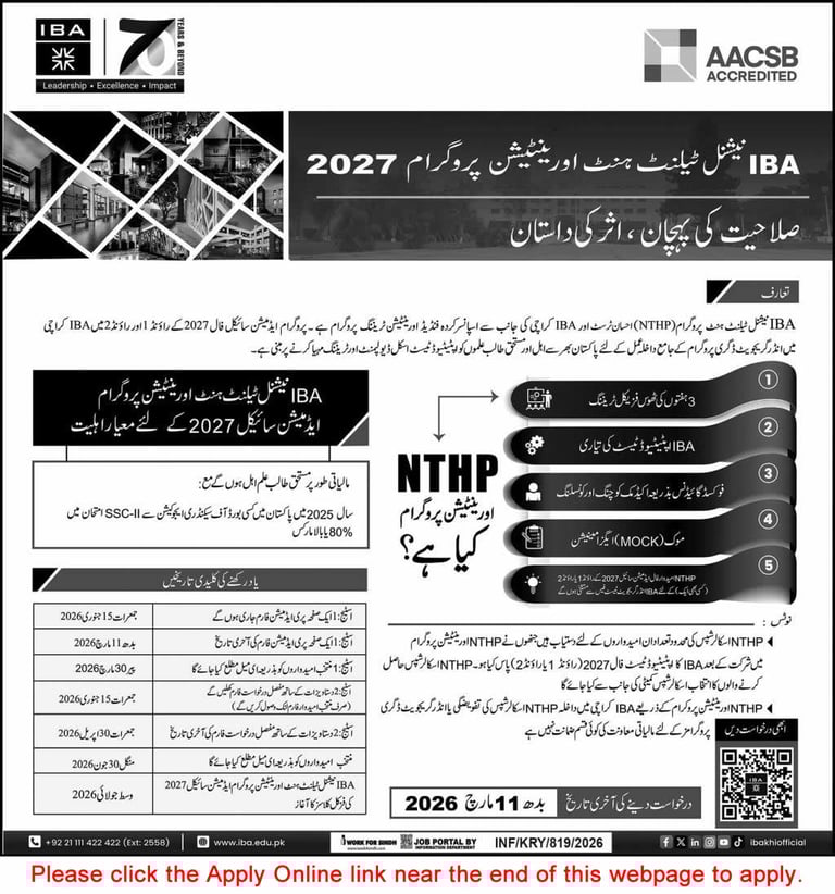 IBA Karachi National Talent Hunt Program 2027 Apply Online NTHP Orientation Program Latest Updates