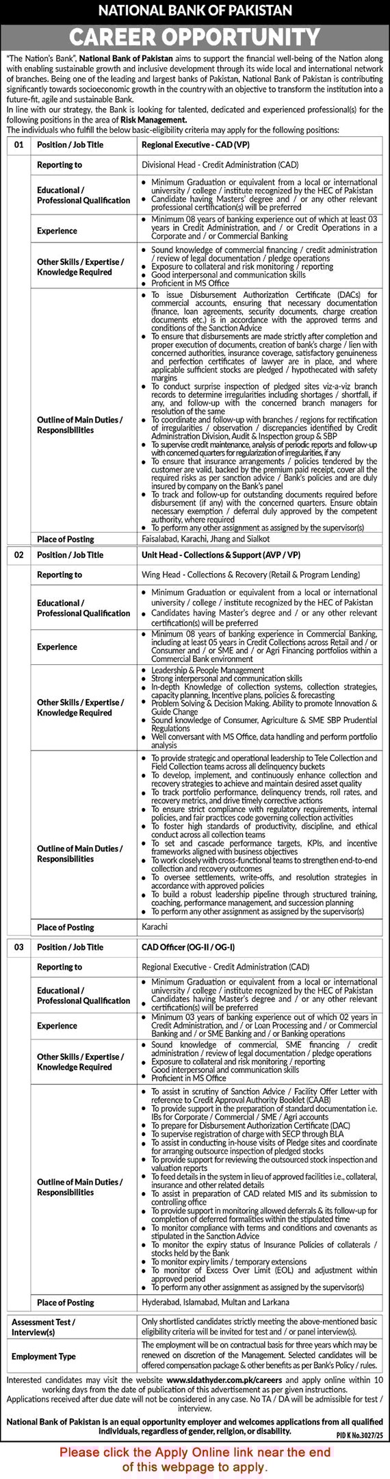 National Bank of Pakistan Jobs March 2026 Apply Online CAD Officers, Regional Executives & Unit Head NBP
