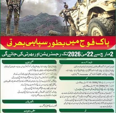 Join Pakistan Army as Sipahi February 2026 Online Registration